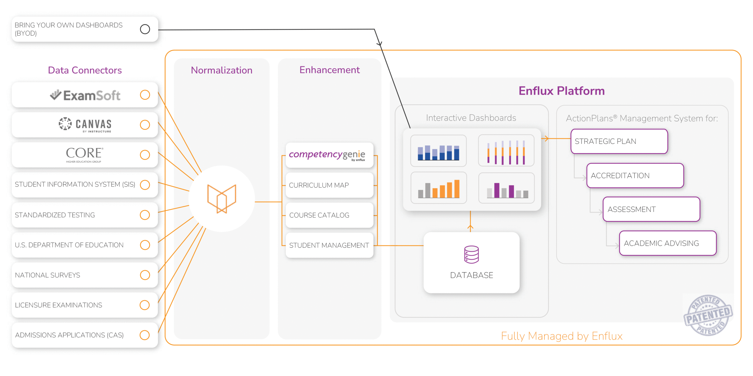Achieve accreditation readiness, curriculum clarity, and student success with Enflux dashboards.