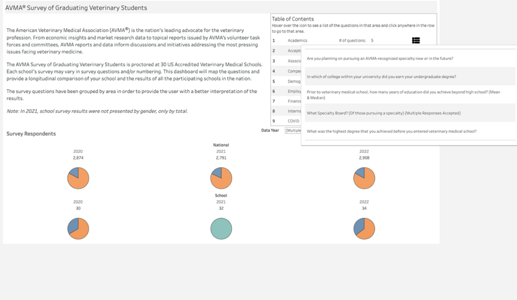 Gain a valuable longitudinal comparison tool that empowers you to evaluate your veterinary medicine school performance in relation to other participating institutions nationwide.